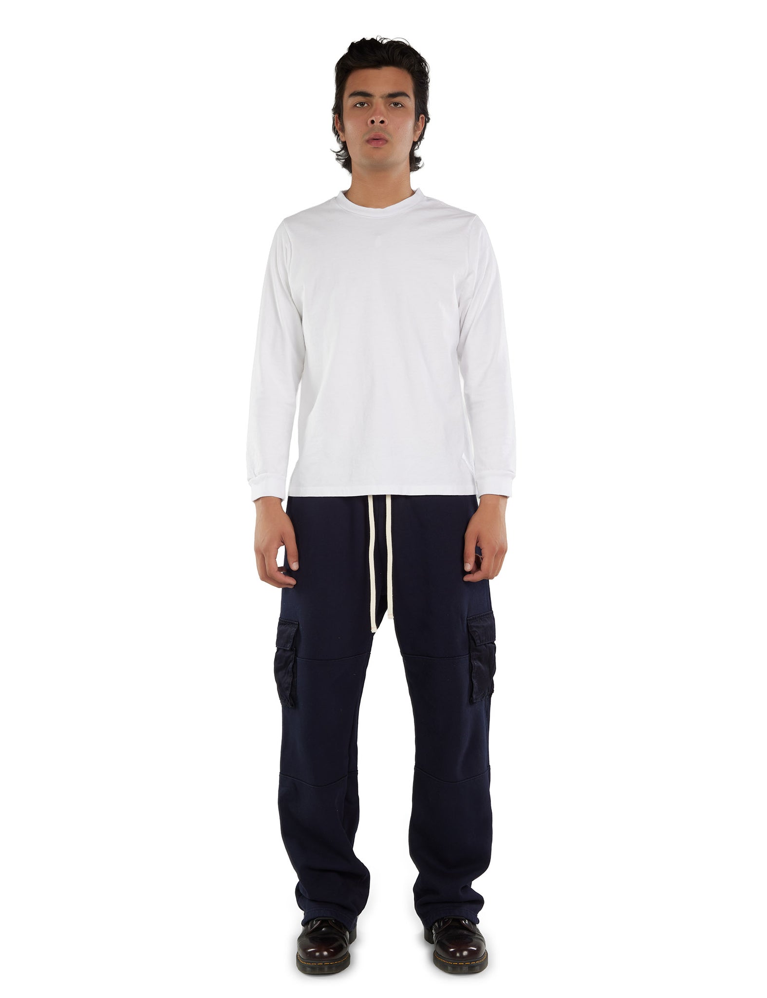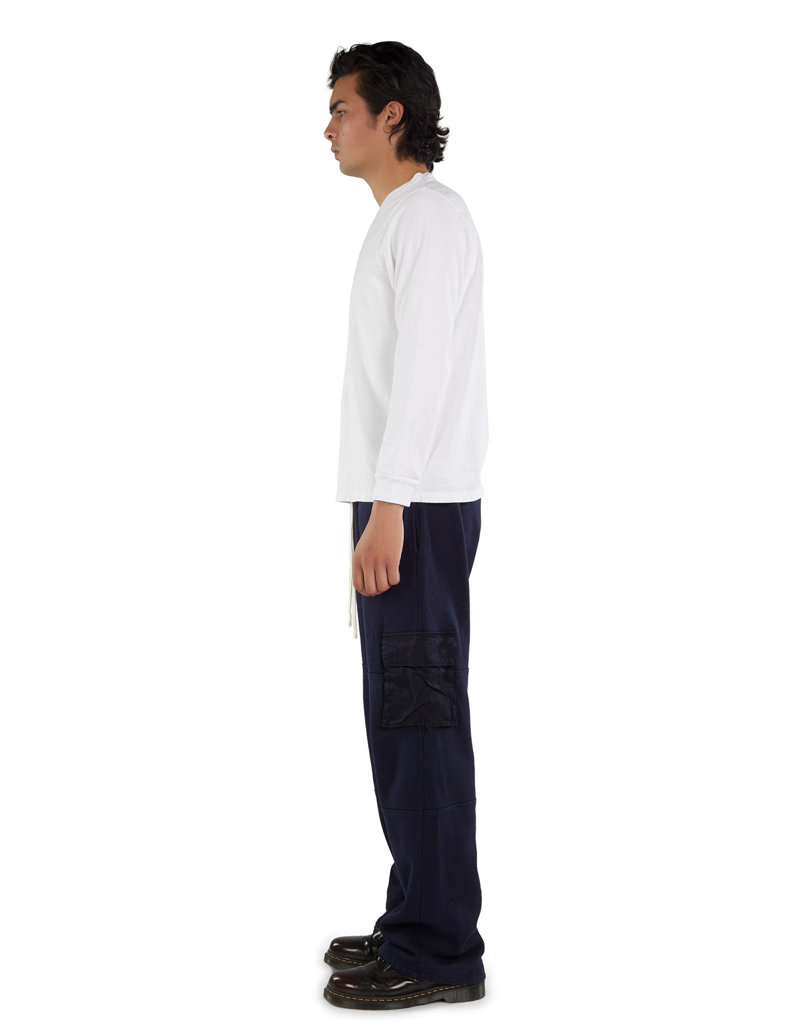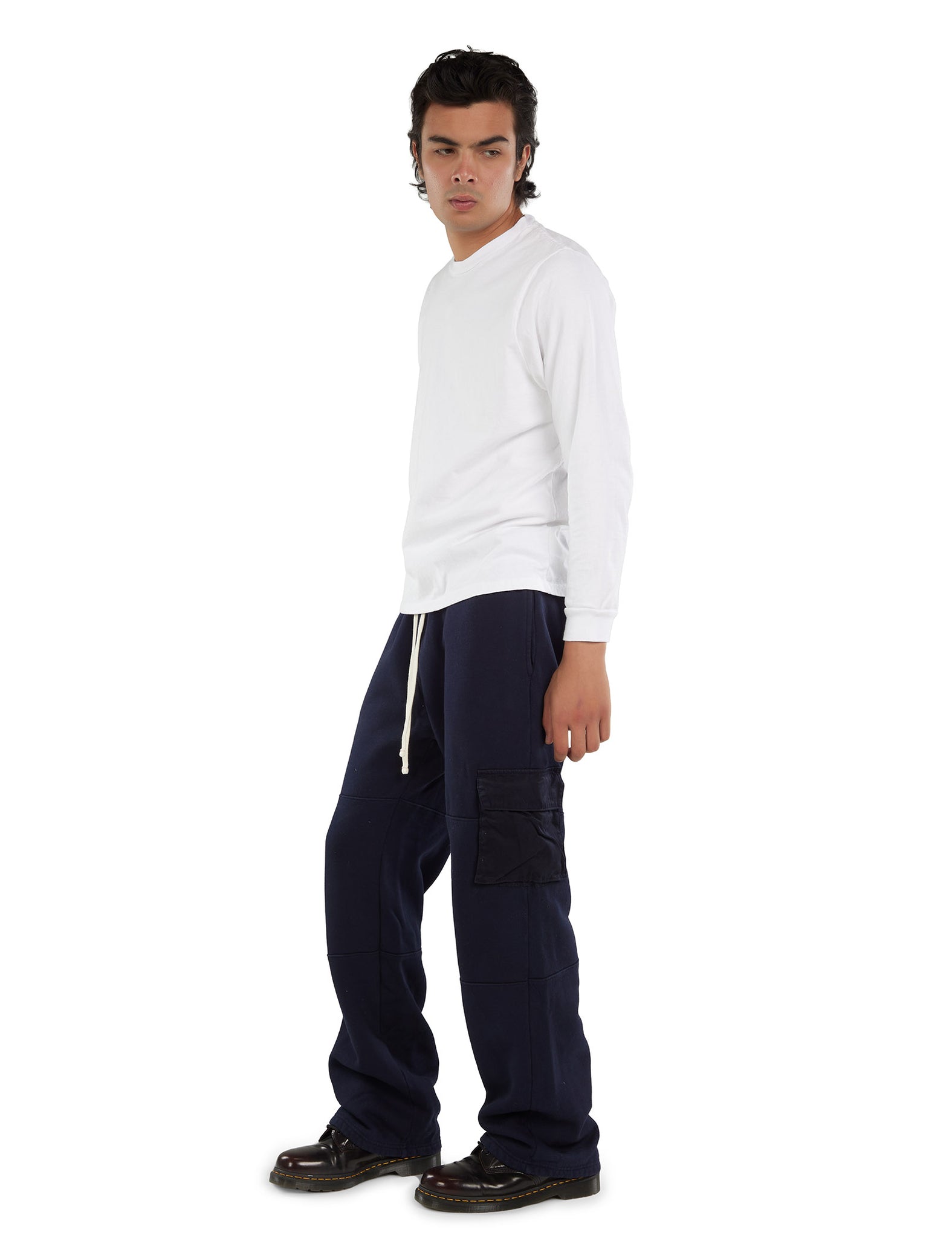 Our widest silhouette offers a roomy leg and waist with a single break at the shoe. Consistent measurements across all styles ensure a true blue-collar shape inspired by American workwear. With the longest front and back rise, the Relax Fit maintains a classic, luxurious silhouette, featuring functional details like cargo pockets, double knees, and double stitching. The slightly larger waist adds a looser fit compared to classic sweatpants.